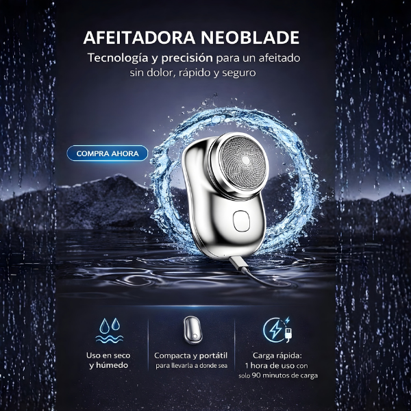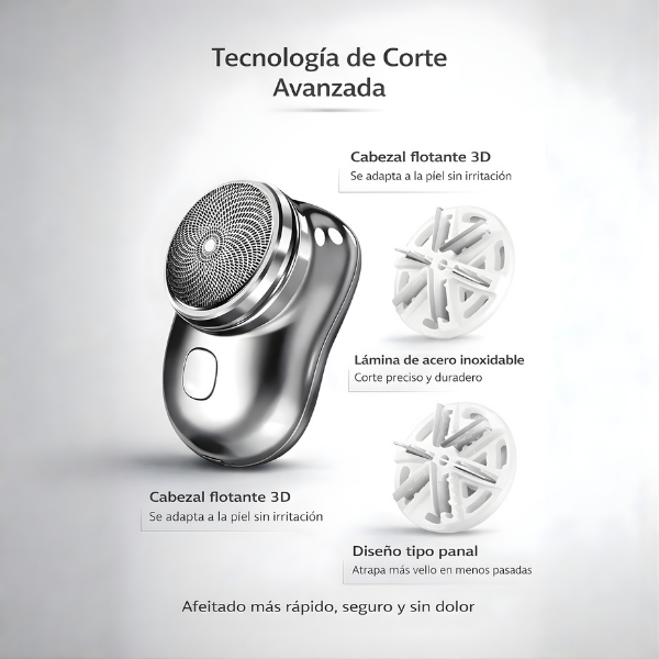 Mini afeitadora eléctrica portátil que ofrece un afeitado rápido, suave y sin dolor, ideal para el día a día y viajes.